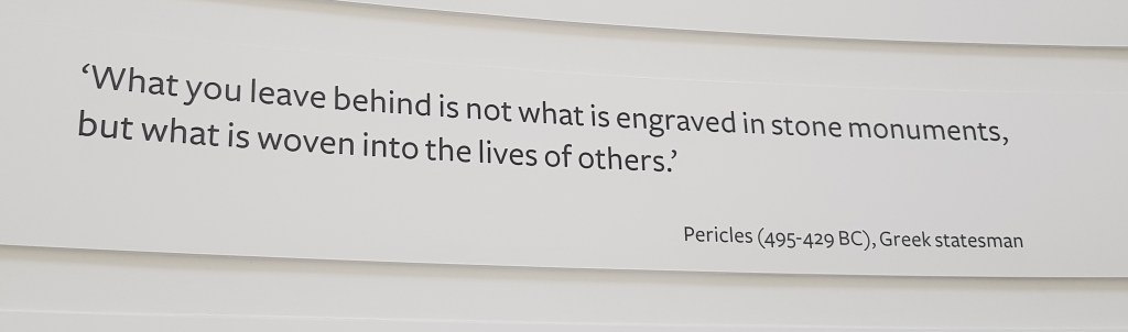 With a hint of irony, these words about legacy and the enduring influence of ideas, stories, and values are displayed on a stone building wall – Aberdeen Art Gallery. But of course, these words have reached us because generations have considered them worth remembering, not because they were engraved in a stone monument. Ideas we remember and preserve for future people are woven into our lives.